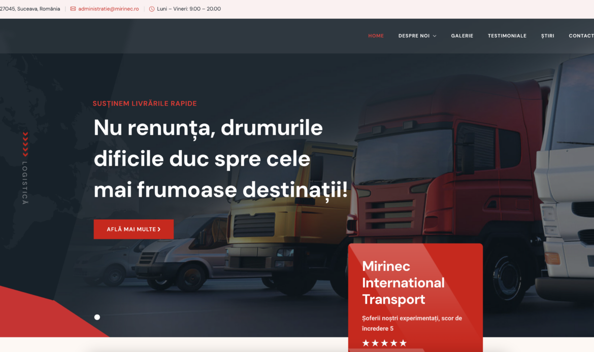 Compania Mirinec, lider regional în servicii de transport și logistică, anunță cu entuziasm lansarea noului său site oficial, menit să ofere clienților o experiență online modernă, rapidă și intuitivă.